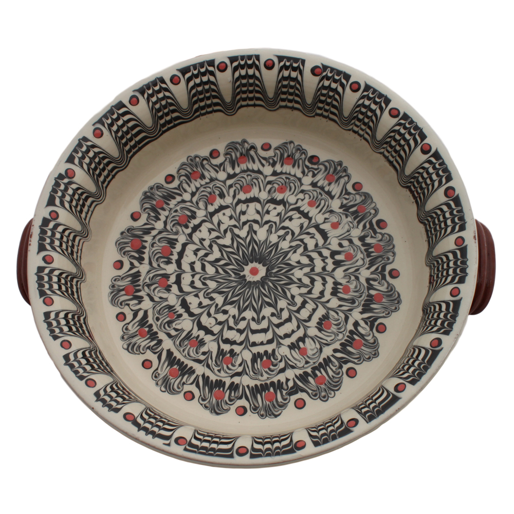 Handmade ceramic clay dish with traditional Bulgarian Trojan pattern. This model of ceramic baking dish is suitable for cooking various main dishes. With its authentic look, this ceramic casserole creates a feeling of warmth, coziness and comfort in your home. All the dishes cooked in it look irresistibly delicious. This pottery cooking dish is suitable as a gift for any occasion, both for women and men. Bulgarian Pottery and Gifts offers wholesale handcrafted pottery is available in volume orders, and we always give consistent service with high quality.