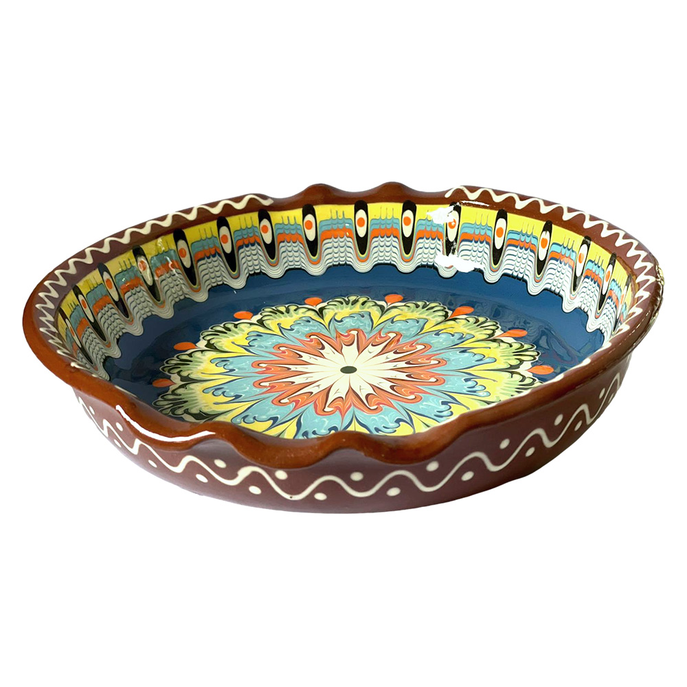 Handmade ceramic clay dish with traditional Bulgarian Trojan pattern. This model of ceramic baking dish is suitable for cooking various main dishes. With its authentic look, this ceramic casserole creates a feeling of warmth, coziness and comfort in your home. All the dishes cooked in it look irresistibly delicious. This pottery cooking dish is suitable as a gift for any occasion, both for women and men. Bulgarian Pottery and Gifts offers wholesale handcrafted pottery is available in volume orders, and we always give consistent service with high quality.