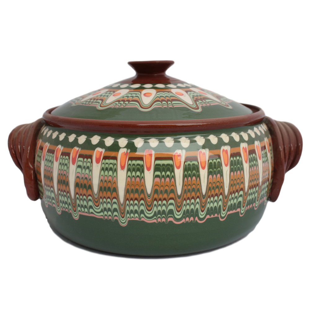 Handmade ceramic clay pot with traditional Bulgarian Trojan pattern. This model of ceramic casserole is suitable for cooking various main dishes. With its authentic look, this ceramic pot creates a feeling of warmth, coziness and comfort in your home. All the dishes cooked in it look irresistibly delicious. This ceramic casserole is suitable as a gift for any occasion, both for women and men. Bulgarian Pottery and Gifts offers wholesale handcrafted pottery is available in volume orders, and we always give consistent service with high quality.
