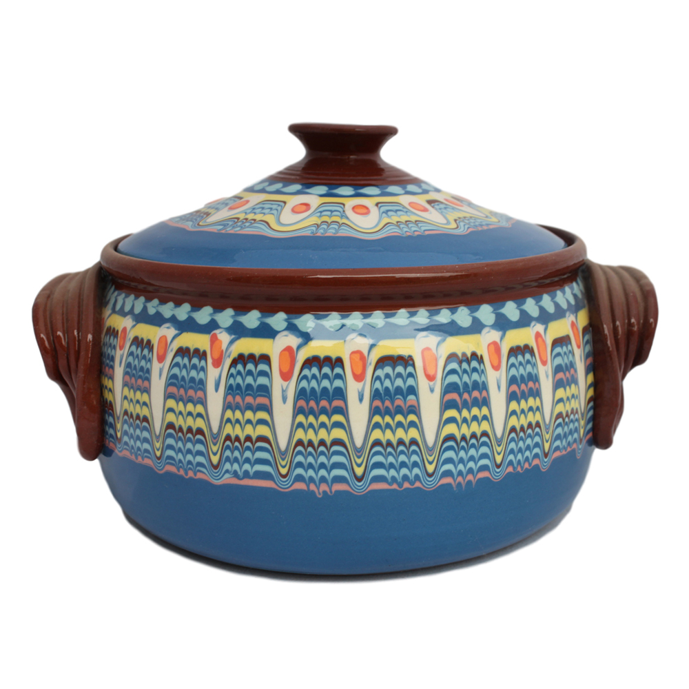 Handmade ceramic clay pot with traditional Bulgarian Trojan pattern. This model of ceramic casserole is suitable for cooking various main dishes. With its authentic look, this ceramic pot creates a feeling of warmth, coziness and comfort in your home. All the dishes cooked in it look irresistibly delicious. This ceramic casserole is suitable as a gift for any occasion, both for women and men. Bulgarian Pottery and Gifts offers wholesale handcrafted pottery is available in volume orders, and we always give consistent service with high quality.